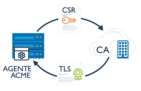 El Entorno Automatizado de Gestión de Certificados (ACME) es un protocolo estándar del sector diseñado para optimizar la gestión de certificados mediante la implementación automatizada y la gestión del ciclo de vida.