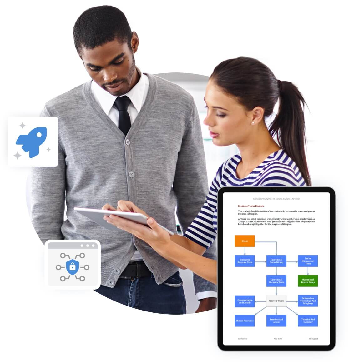 Las pruebas y el mantenimiento implican un ejercicio práctico y una revisión posterior a la acción (RAA). Un ejercicio práctico de BCP es una sesión informal de intercambio de ideas que fomenta la participación de los líderes empresariales y otros empleados clave para debatir sus respuestas ante una situación de emergencia específica.