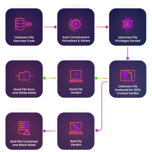 Aislamiento inmediato de archivos desconocidos sin afectar la productividad.