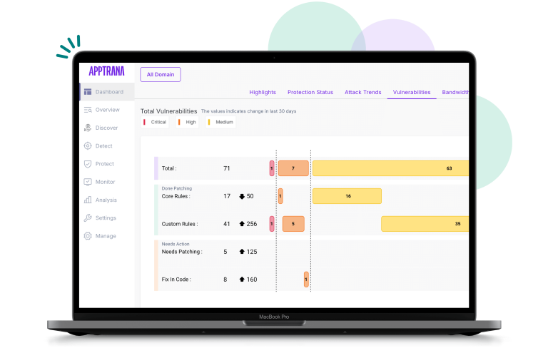 Cumpla fácilmente con auditorías de seguridad globales y regionales gracias a informes de cero vulnerabilidades. AppTrana remedia de forma autónoma vulnerabilidades críticas, altas y medias en solo 72 horas.