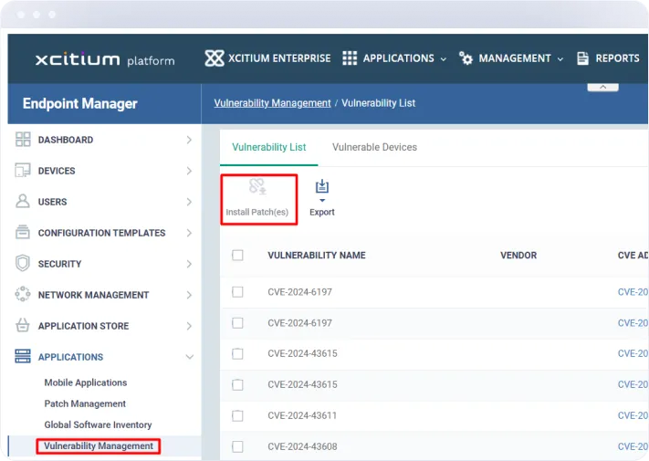 Mantenga su entorno de TI seguro y en cumplimiento con la solución de gestión de parches de Xcitium. Automatice la implementación de parches, la gestión de vulnerabilidades y la monitorización en tiempo real para garantizar que sus sistemas estén siempre actualizados y protegidos. Con una consola de administración centralizada, políticas de parches personalizables e informes detallados, la solución de gestión de parches de Xcitium optimiza el proceso de aplicación de parches y mejora la seguridad.